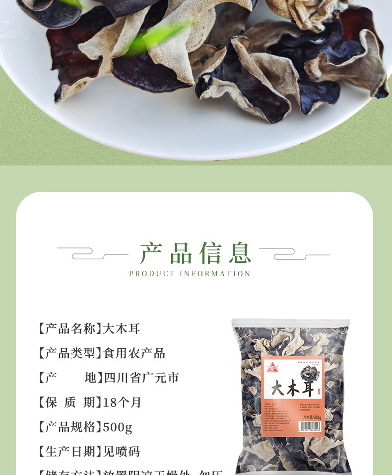首页 > 南北干货 > 干木耳 > 青川县大木耳500g 干菌子干木耳大片食堂采购食材包邮