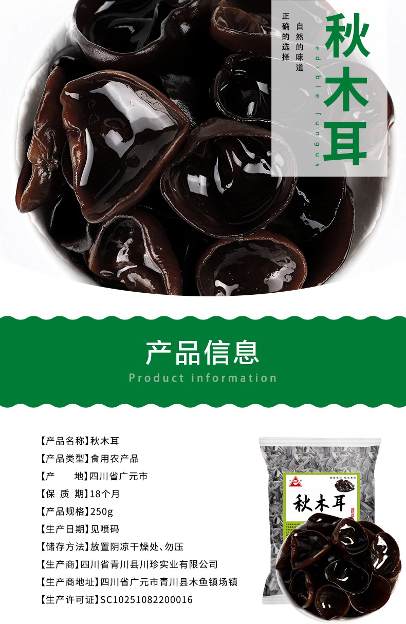 青川县秋木耳250g椴木木耳高山细木耳小木耳干菌子干货