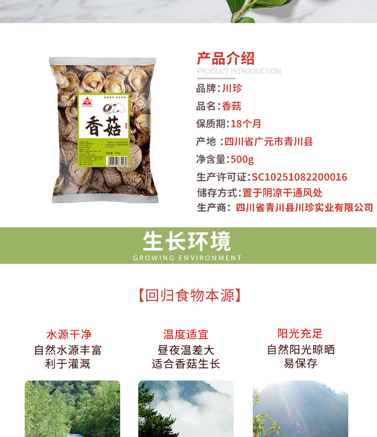青川县香菇500g 南北干货 山珍干货蘑菇 菌类
