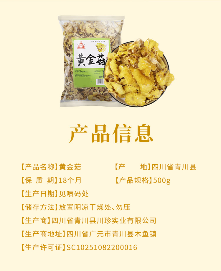 首页 > 南北干货 > 干菌子 > 青川县鸡油菌500g黄金菇鸡油菌干货黄丝菌干菌子黄菌鸡油菌