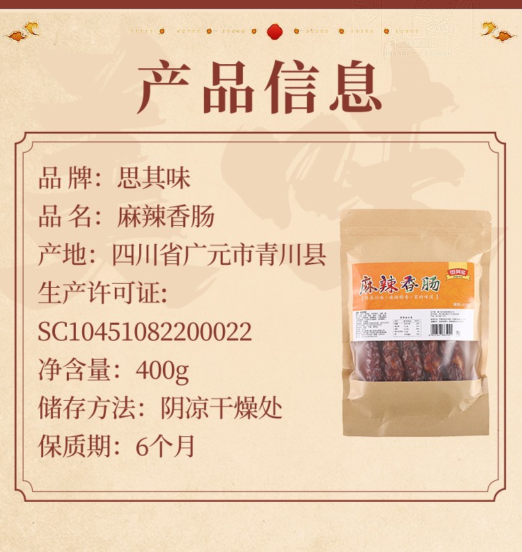 青川县麻辣香肠400g香肠香肠香肠猪肉香肠腊肠香肠四川腊肉