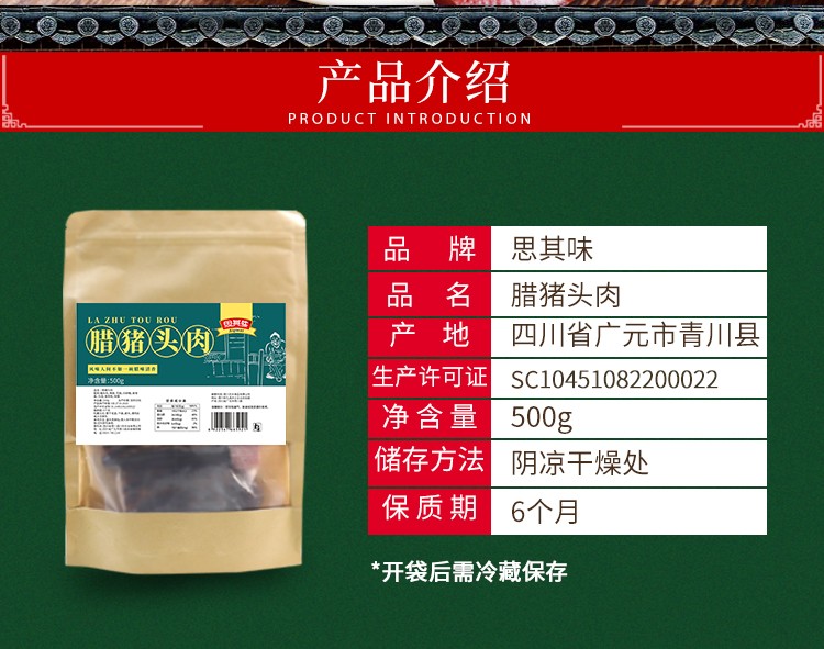 青川县腊猪头肉500g川味腊肉烟熏猪肉腊猪肉猪头肉