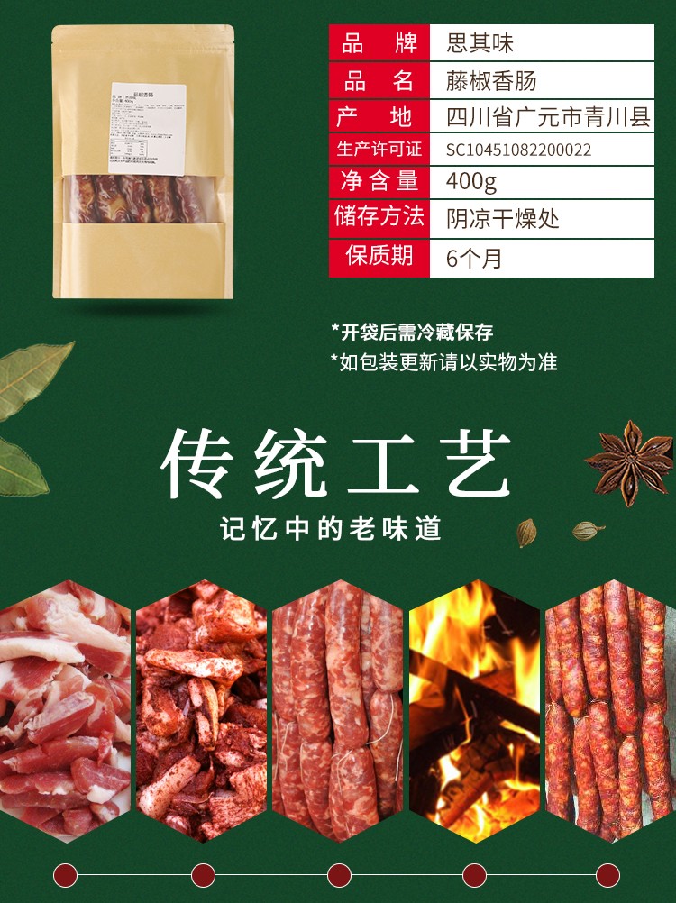 青川县藤椒香肠400g藤椒味香肠腊香肠