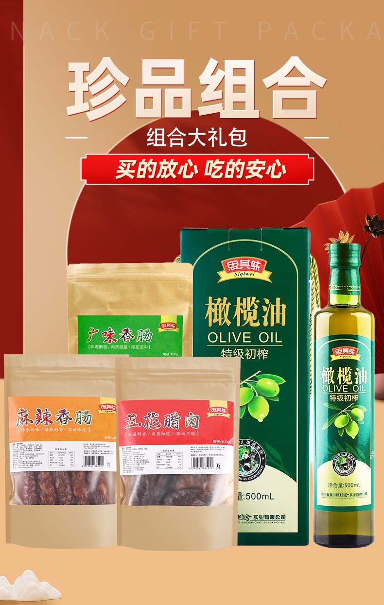 首页 > 礼尚往来 > 其它组合 > 青川县橄榄油香肠腊肉组合1700g橄榄油礼盒香肠腊肉烟熏腊制