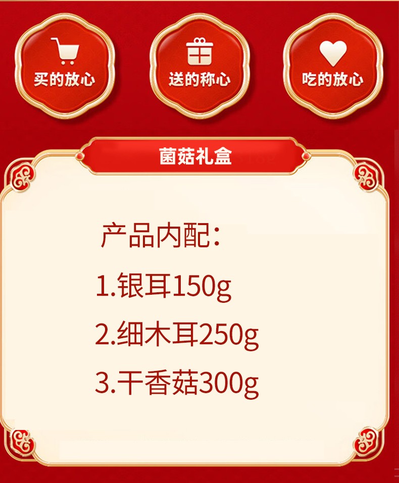 首页 > 南北干货 > 干菌子 > 青川县干菌子组合700g细木耳香菇银耳菌菇煲汤山珍干货礼盒