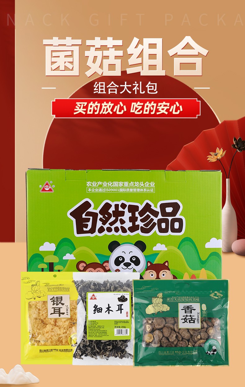 青川县干菌子组合700g细木耳香菇银耳菌菇煲汤山珍干货礼盒