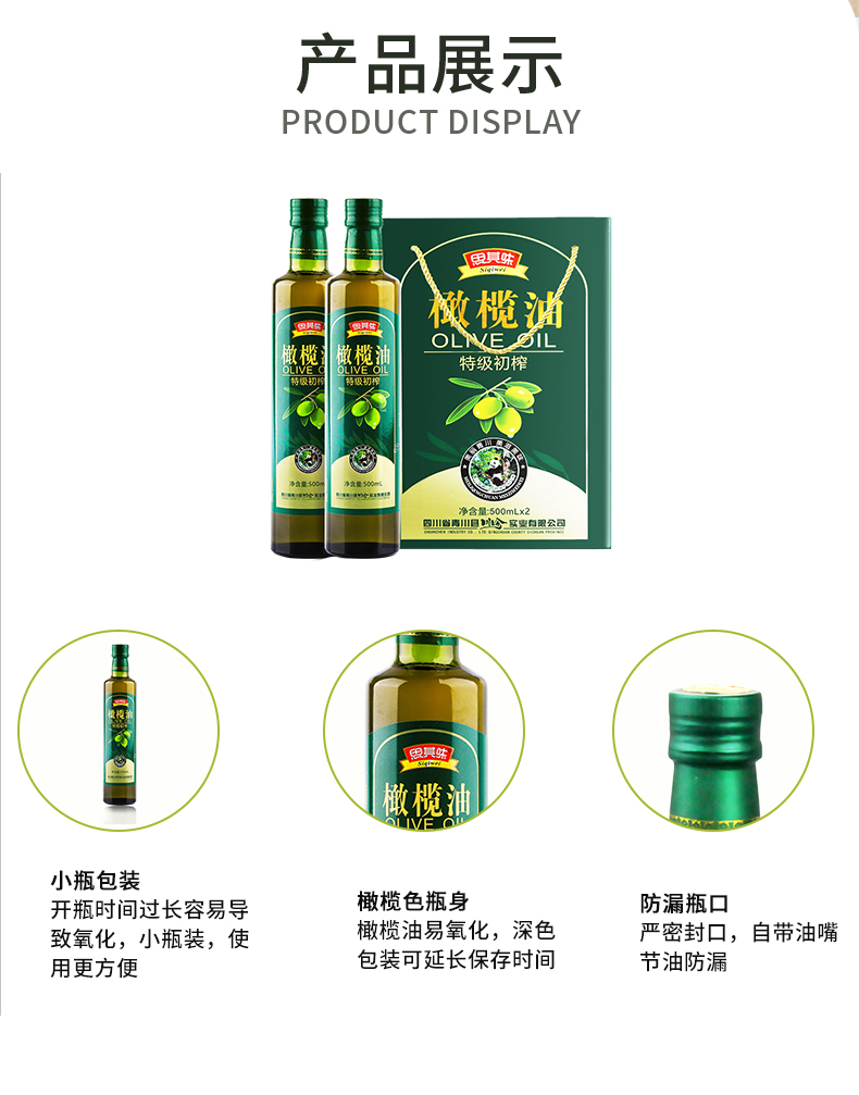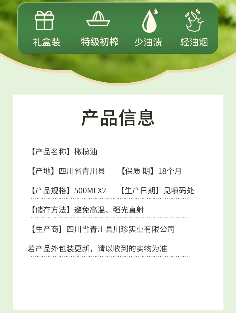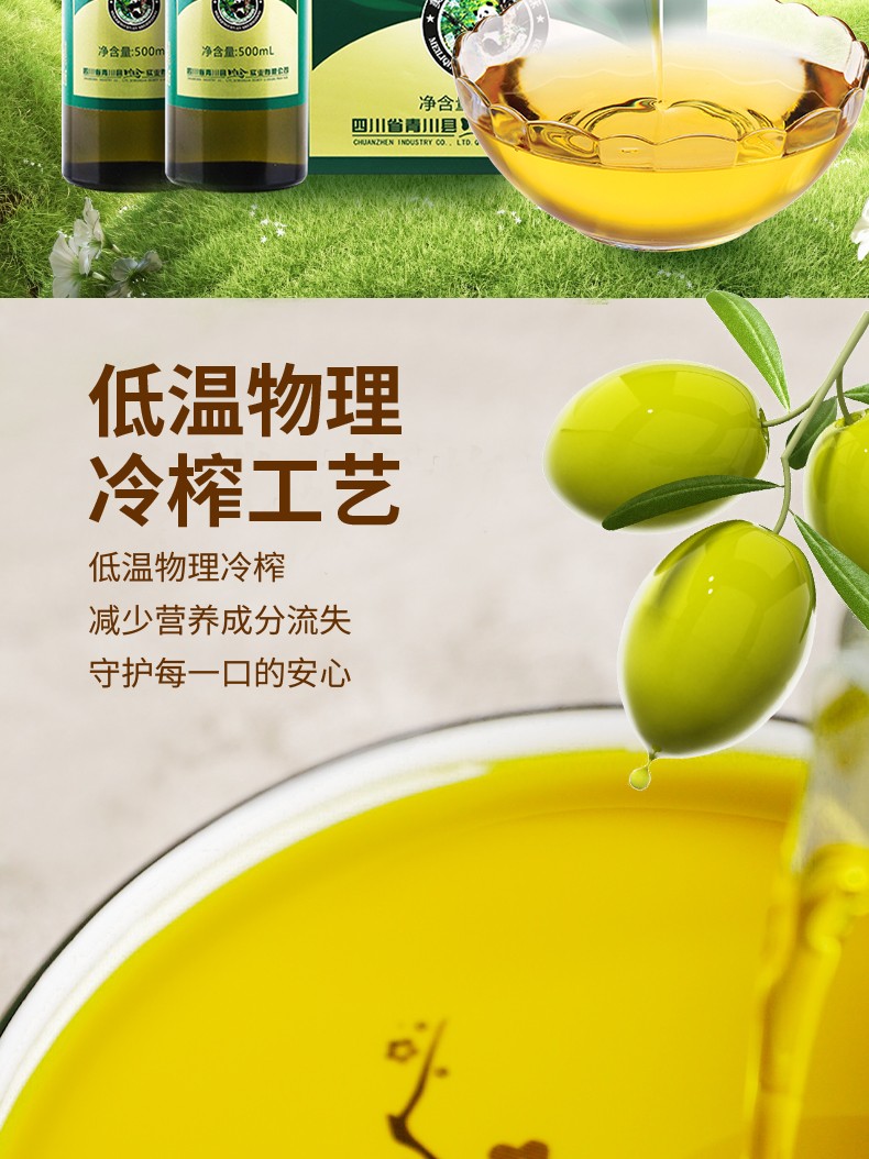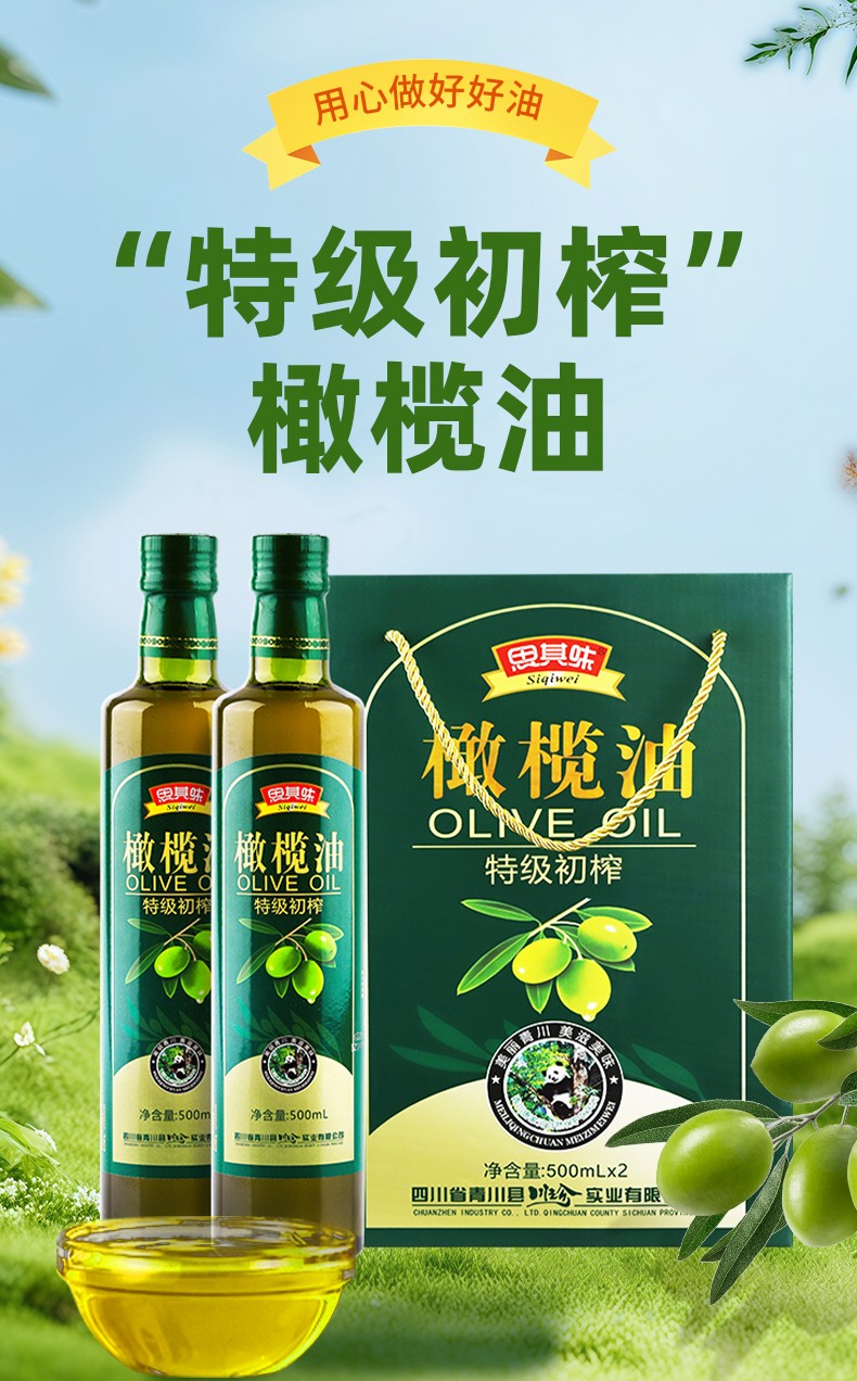 青川县思其味特级初榨橄榄油500mlx2瓶/盒工会包邮