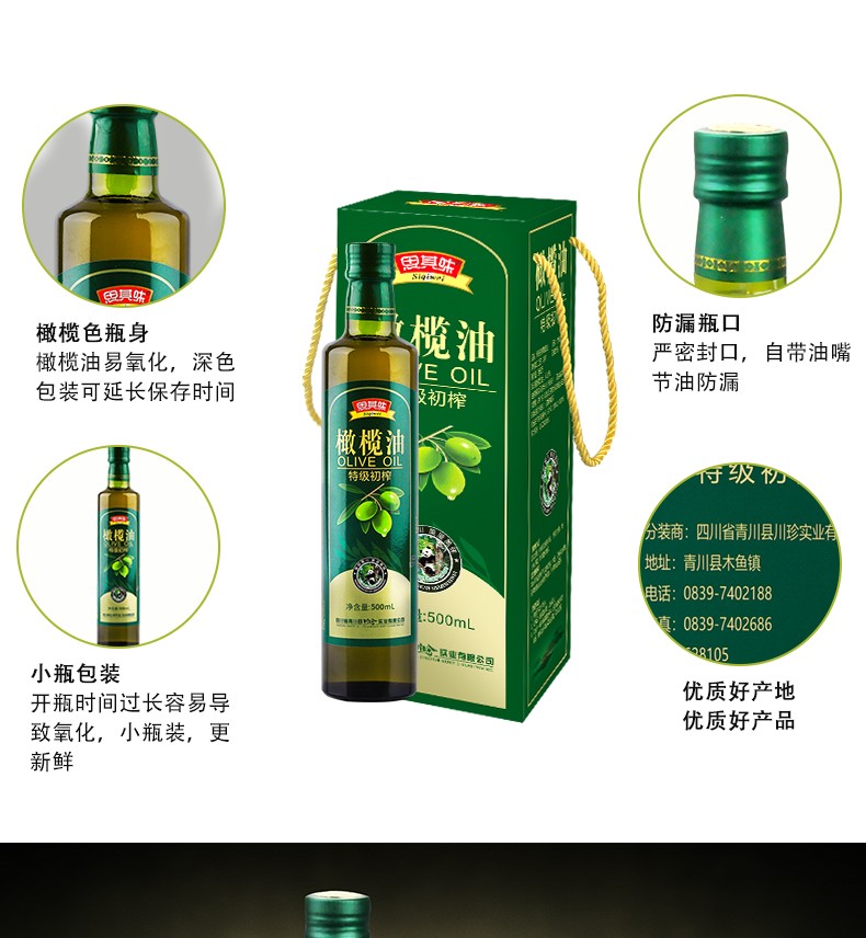 青川县农家思其味特级初榨橄榄油500ml食用橄榄油