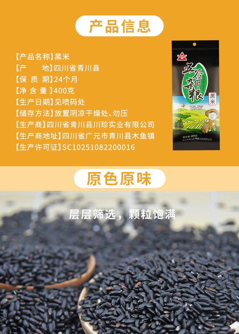 首页 > 五谷杂粮 > 黑米 > 青川县黑米400g黑香米黑大米杂粮粗粮紫米黑米当季新黑米