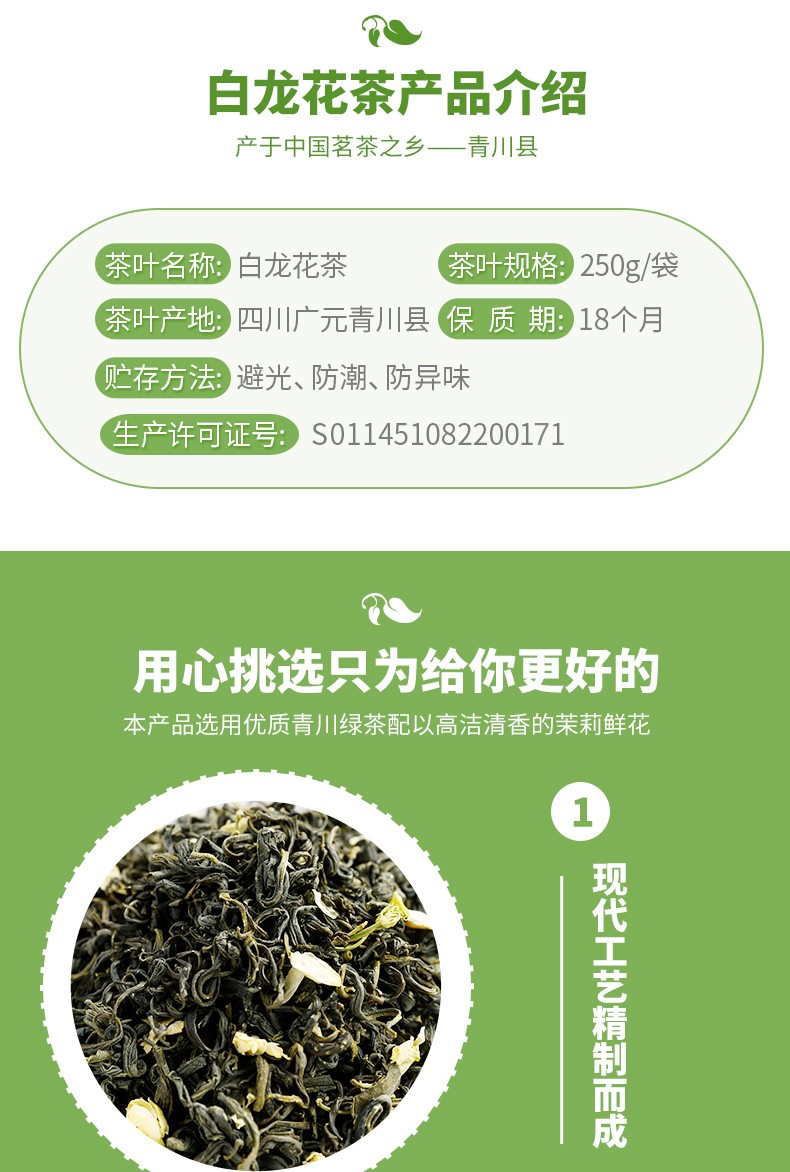 青川县白龙花茶250g花茶茉莉花茶办公室下午茶花茶茉莉