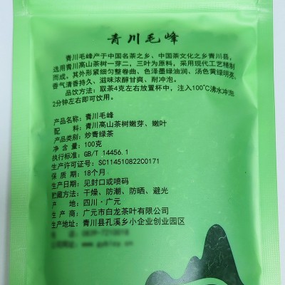 青川县毛峰绿茶100g绿茶茶叶绿茶绿茶高山茶树嫩叶嫩芽茶叶