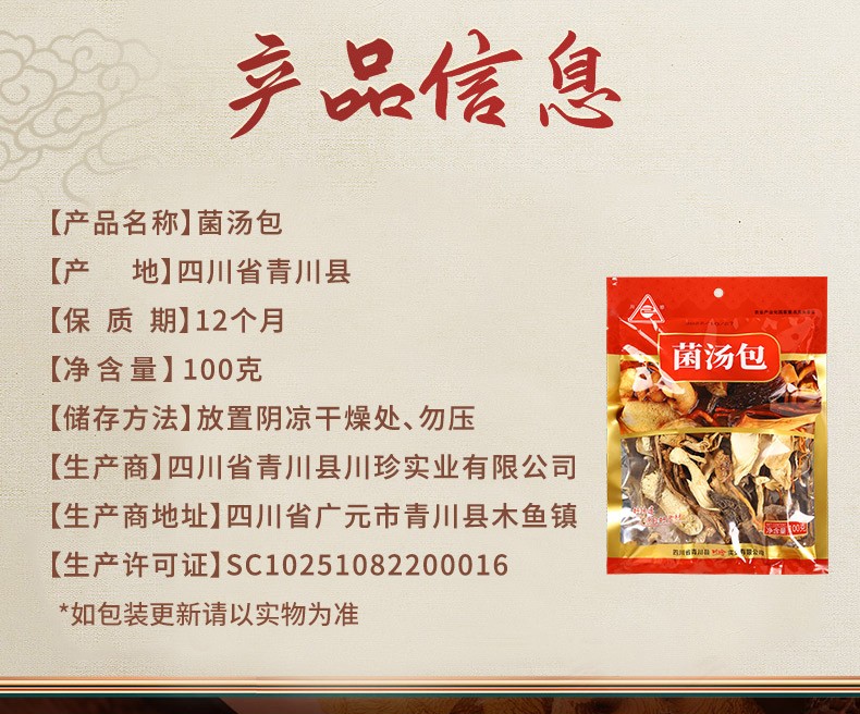 青川县青川县菌汤包100g九珍菌汤包干菌子含姬松茸羊肚菌竹荪