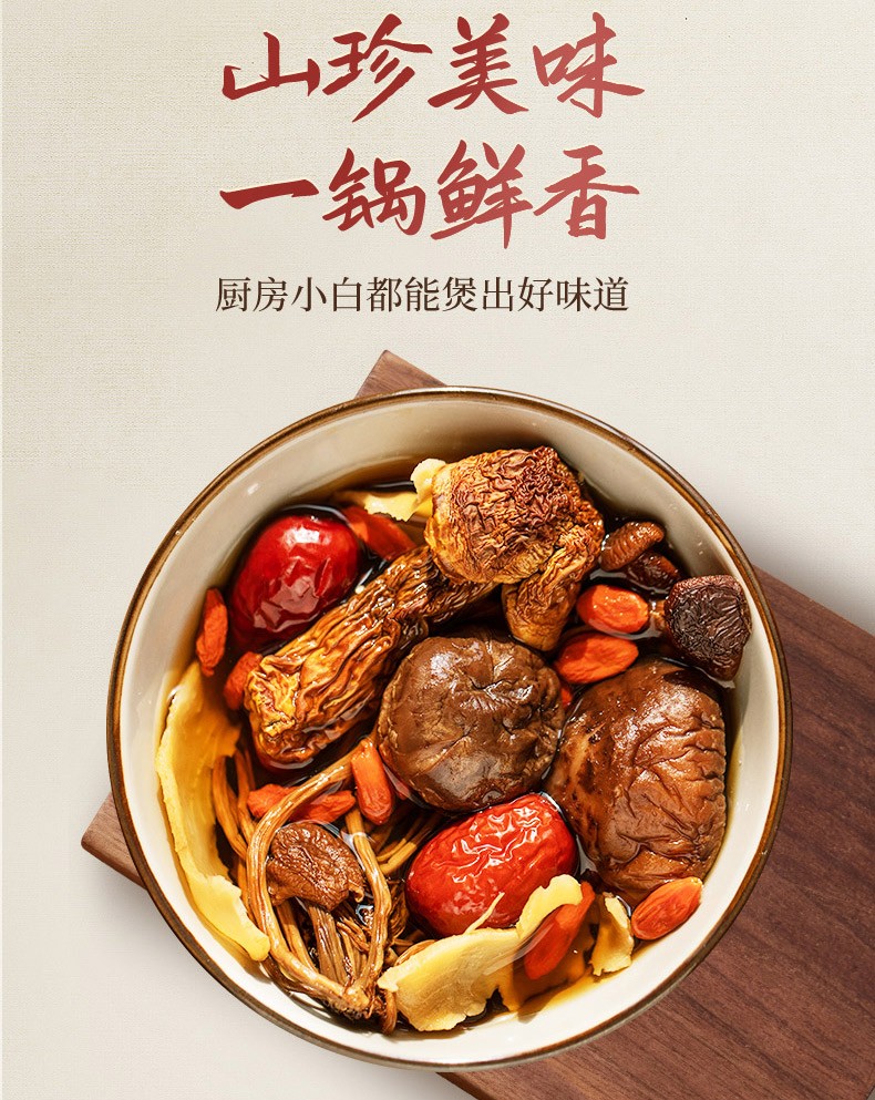 首页 > 南北干货 > 干菌子 > 青川县青川县菌汤包100g九珍菌汤包干菌子含姬松茸羊肚菌竹荪